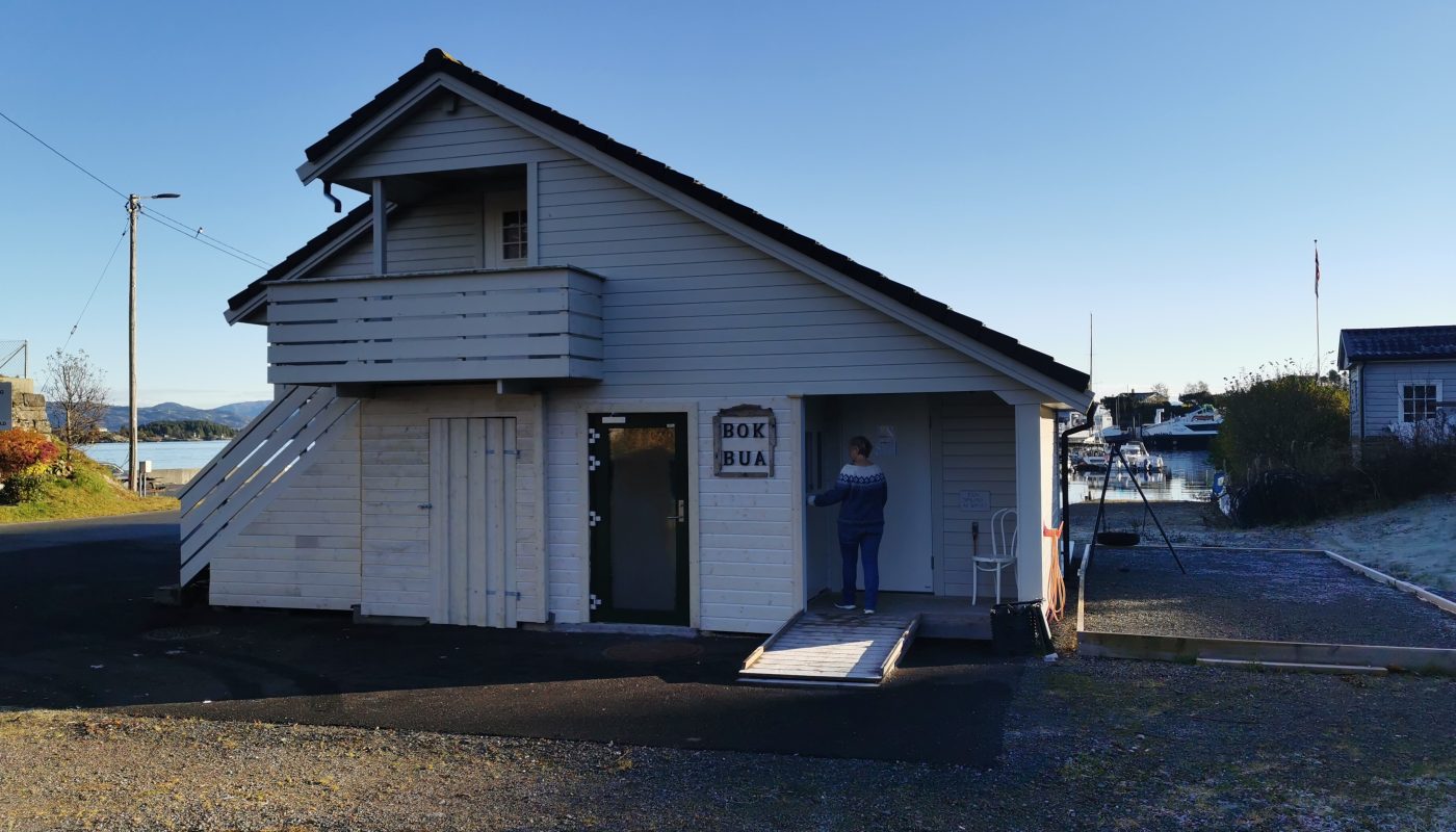 Hei! Så er «Bok Bua» i Klokkarvik offisielt åpnet. Jarle Sælensminde holdt åpningstale, Wenche Tyssøy klippet snoren og mange flotte fremmøtte skålte i «champagne» brus og gledet seg over et nytt flott tilskudd i bygden. Gode Øyvind Dåvøy fra båtlaget steikte nydelige lapper med kaffe attåt. For en glede!