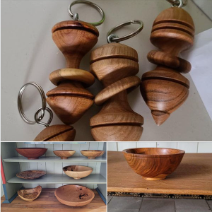De har brukt lokale tresorter å dreie på. Lørdag 31. august kan du besøke Arns utstilling på moloen