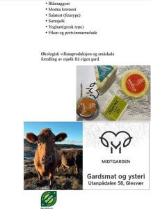 Her blir det ost, yoghurt, melk og andre godsaker i disken. Det er mulig å legge inn forhåndsbestilling, så nøl ikke! Du sender din til bestilling til: midtgarden58@gmail.com,